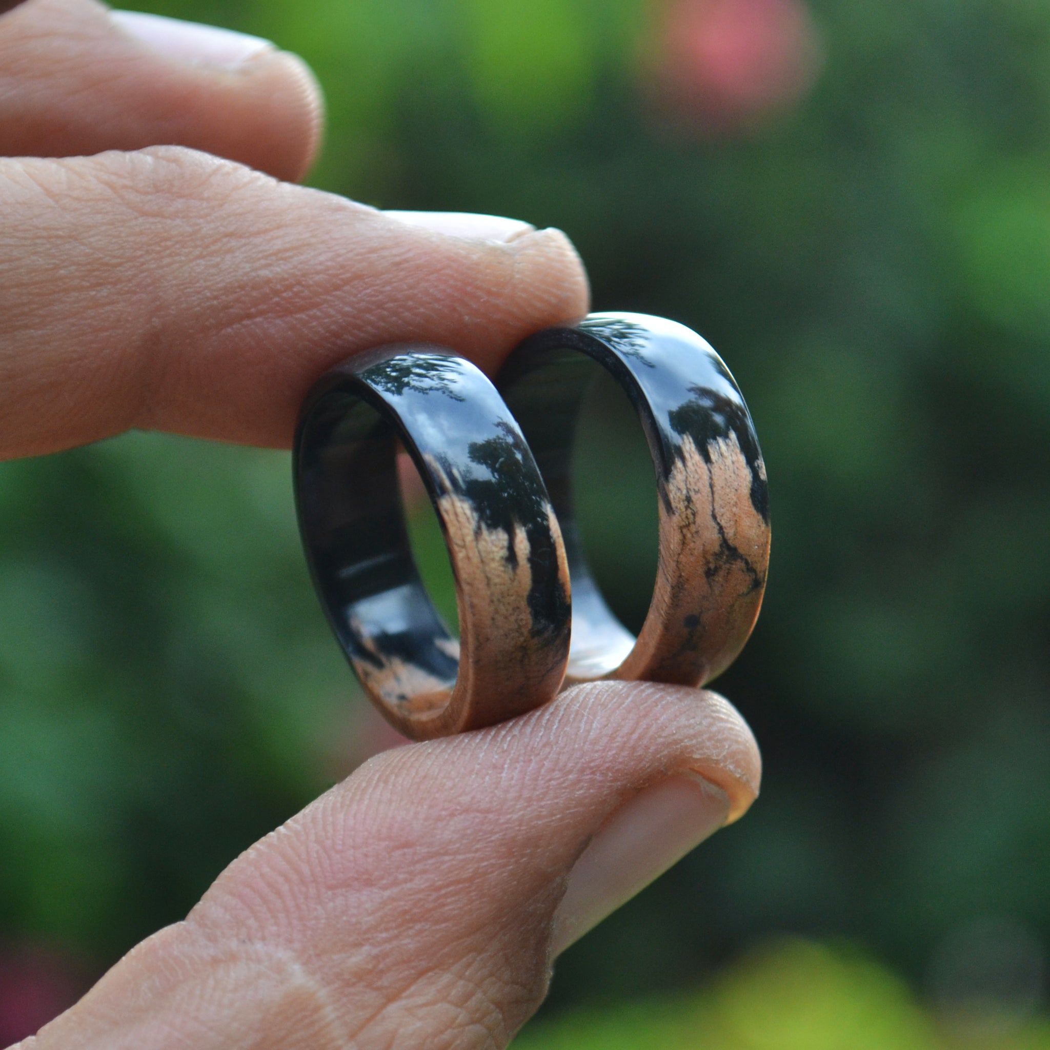 -The wood of the ring is sealed in resin to protect it from water damage and the effects of time.